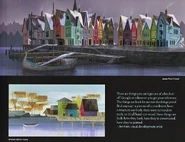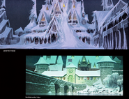 Los diseños decorativos estampados en toda la arquitectura en Arendelle se basan en el concepto del rosemaling noruego. Rosemaling es un arte popular de Noruega que se centra en el uso de la ornamentación de flores estilizadas. Este adorno de flor también se presenta en la ropa (es decir, de Anna y de Elsa en la vestimenta de coronación) y se extiende incluso a la magia de Elsa.