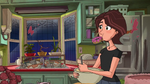 Cuando Pegagoso ataca la casa como un dinosaurio, una bandera flota en frente de él brevemente, Esta toma recrea la famosa escena de clímax de Jurassic Park.