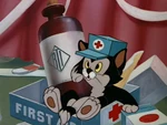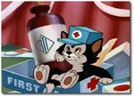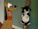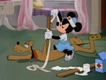 Minnie practica los primeros auxilios a Pluto, para deleite y diversión de Fígaro.