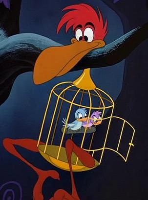 Mientras Alicia pasea, tropieza con él, abriendo la puerta de la jaula, y los pajarillos escapan. El Pájaro Jaula empieza a perseguirles, y acaba zampándoselos, así volviendo a meterlos en la jaula.