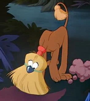 Es un perro con la cabeza y la cola en forma de escoba. Se dedica a barrer el País de las Maravillas.