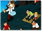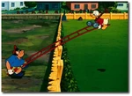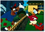 La pelea llama la atención de todo el vecindario y los titulares se esparcen por todo el país. ("Pelea de Vecinos Crece", "¡Guerra! Entre Vecinos", "¡Vecindario en Erupción! Será Grabado por Televisión"). El vecindario completo llega a ver la pelea entre Donald y Pete. Pete comienza el ataque a la propiedad de Donald talando la mayoría de sus árboles (Pete dice "Mirá como vuelo esto, ¡payaso!"). Donald luego corta sus calzoncillos colgados como venganza por atacar su propiedad. La batalla continua: Pete lanza sus manzanas a Donald, Donald catapulta pintura en la cara de Pete con un hacha. Pete arroja basura a Donald. Donald lanza una tapa de basurero a Pete rompiendo su invernadero, Pete lanza una podadora a Donald rompiendo su tejado, Donald corre hacia Pete con la podadora, y para último se quedan colgados en una escalera como si fuera un balancín.