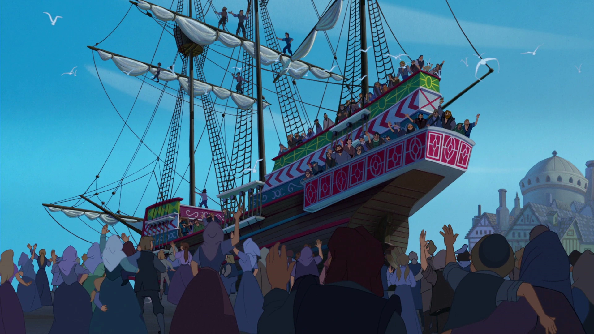 - Cuando El Gobernador Ratcliffe está abordando el barco durante la canción, La Rata de La Dama y el Vagabundo puede ser vista abordando el barco también.
