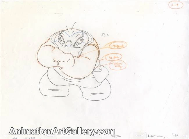 Jumbaa est conçu pour être non-humanoïde, avec un corps massif, quatre yeux (dont deux souvent fermés), une peau pourpre et une silhouette ronde, contrastant avec le design fluide de Lilo ou l’agilité de Stitch. Sa silhouette évoque un mélange de puissance, d’absurdité et de bienveillance. Malgré son air menaçant, ses formes molles et sa gestuelle maladroite le rendent attachant. Sa peau violette et ses vêtements sombres le distinguent comme une figure d’autorité technologique, tout en restant dans l’univers coloré et cartoon du film. Les animateurs ont joué sur la micro-expression de ses yeux (inférieurs et supérieurs) pour accentuer la comédie et les retournements d’émotion.