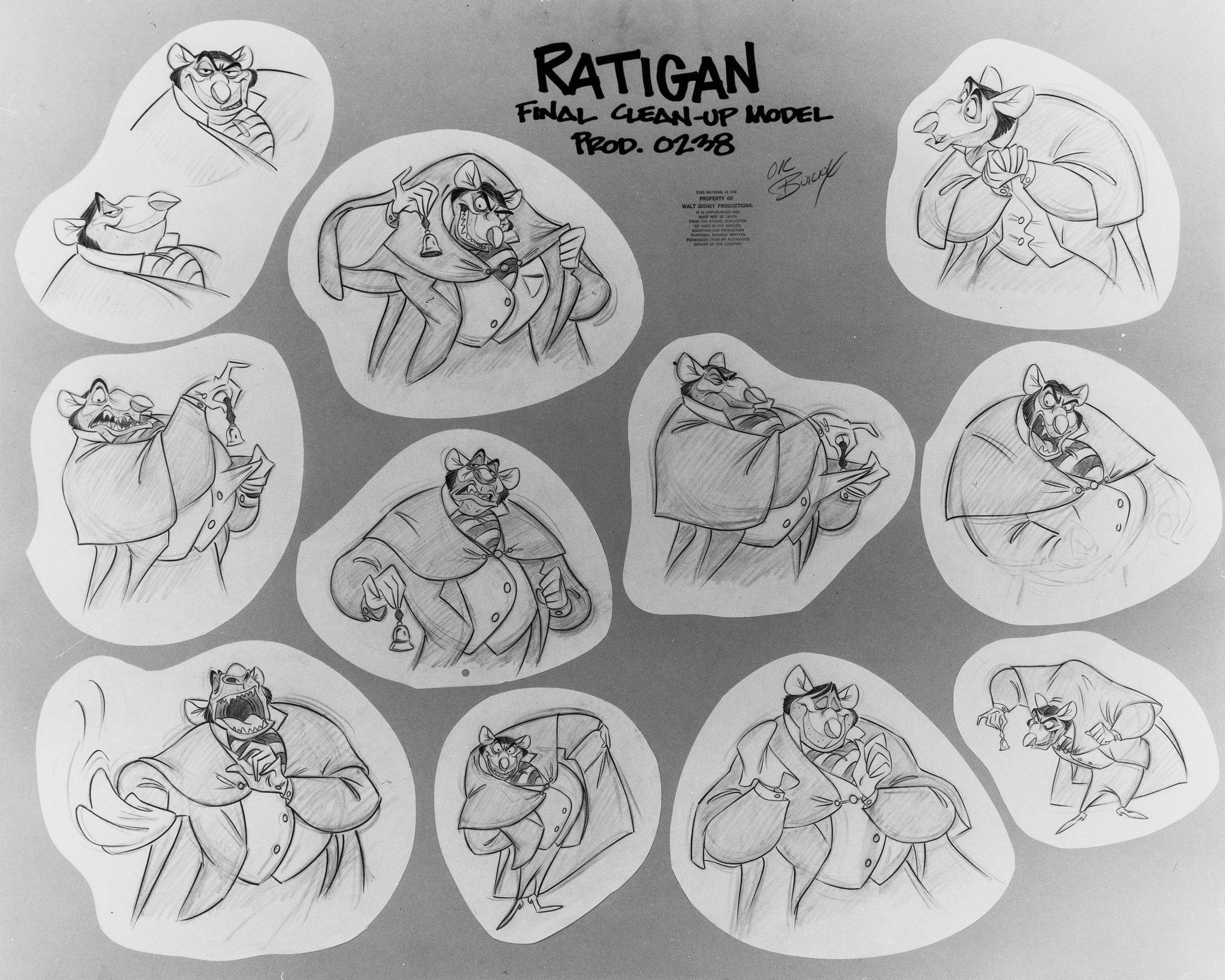 Au départ, Ratigan avait été conçu pour être fin, sournois et semblable à un rat. Après la projection de Champagne for Caesar, Glen Keane a noté qu’à la suite du casting de Vincent Price, « sa voix expressive et son attitude nous ont inspirés à repenser davantage le personnage. »[5] De plus, au cours d’une réunion sur le scénario, Glen Keane a décidé de fonder la stature de Ratigan sur celle du PDG de Disney de l’époque, Ron Miller,[6] qui était un ancien joueur de football américain de deux mètres de hauteur pour les Rams de Los Angeles.[5]