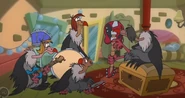 Les vautours font des apparitions régulières dans le Club Mickey. Dans l’épisode Le Roi Larry, ils devaient interpréter un numéro musical, mais le roi Larry — le frère jumeau de Louie — sabote leurs instruments. Les charognards, furieux, quittent alors le club.