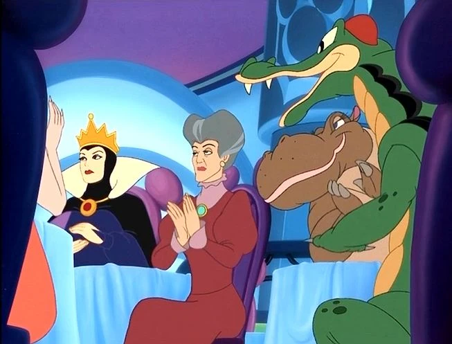 Nell'episodio "La notte delle donne" ogni volta che Mortimer arriva dentro il locale lei gli salta sopra. Appare spesso seduta insieme a l'alligatore nel tavolo vicino a Grimilde e la matrigna di Cenerentola