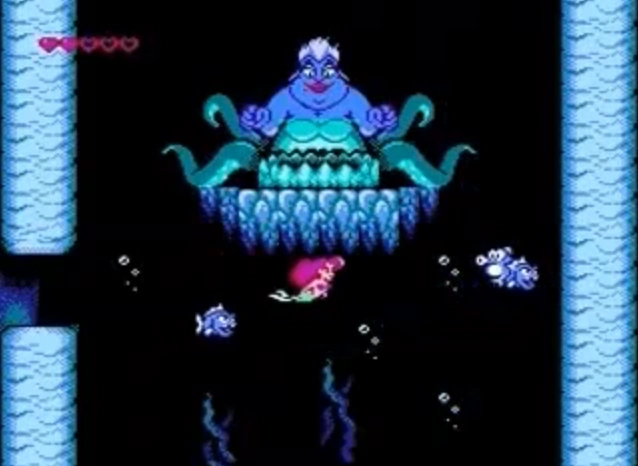 Durante a primeira fase da batalha final com Úrsula ela usa o caldeirão como sua principal forma de ataque. A partir dele, ela convoca várias criaturas do mar para atacar Ariel. Ariel deve jogá-los de volta para ela para derrotar Úrsula.