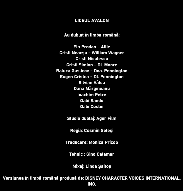 Versiunea în limbă română produsă de: DISNEY CHARACTER VOICES INTERNATIONAL, INC.