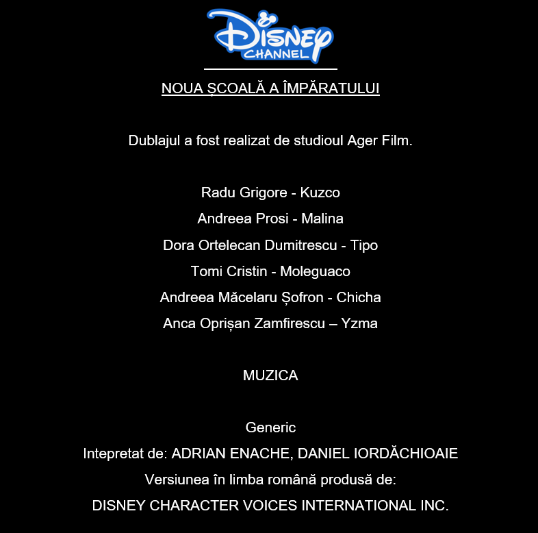 - Versiunea în linba română a fost produsă de : DISNEY CHARACTER VOICES INTERNATIONAL INC.