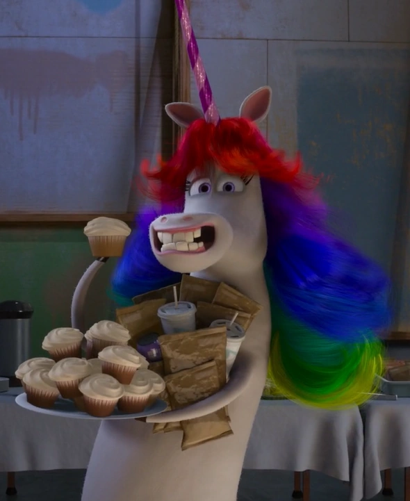 Единорожка появляется эпизодически в Студии Сновидений, где её встречают Радость, Печаль и Бинго Бонго. Впервые увидев Единорожку в живую, Радость впадает в восторг. Позже, во время проникновения Радости и Печали в павильон, Единорожка случайно попадается на камеру в попытке украсть несколько пирожных и напитков. Затем, она выполняет танцевальный номер во время съёмок сна Райли; только никто из наблюдающих не воодушевлён её танцами. В конец, её выступление прерывается проникновением на съёмки клоуна Лысика.