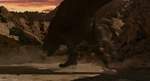 Позже, когда Аладар, его семья, друзья и Брутон укрываются от ливня в пещере, Карнотавры обнаруживают их и атакуют. Брутон приходит на помощь и жертвует собой, вызывая обвал, убивая самку Карнотавра. Однако самец выживает и рычит, по-видимому, расстроенный потерей своего приятеля, прежде чем продолжить поиски стада.