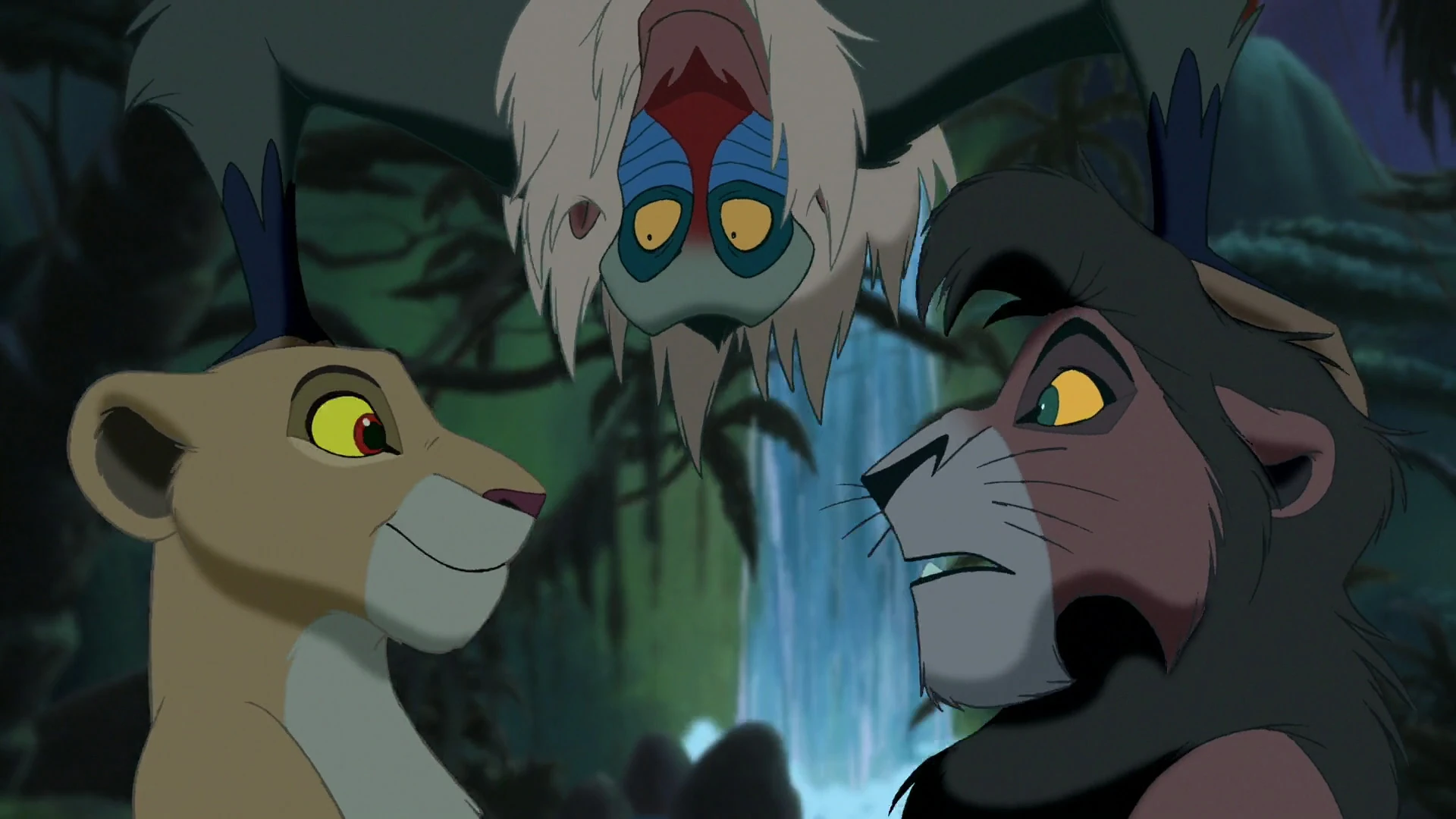 Спустя годы наступает первая самостоятельная охота взрослой принцессы Киары. Мудрый мандрил-шаман Рафики начинает беспокоиться за то, что Кову, обученный тренировками Зиры убивать, стал ещё злее чем в детские годы, и дела идут не очень хорошо. Своими переживаниями он делится с духом покойного Муфасы. Тогда Муфаса «предлагает» просто свести Киару с Кову вместе, но его план кажется шаману абсурдным. Однако он обещает поверить Муфасе на слово.