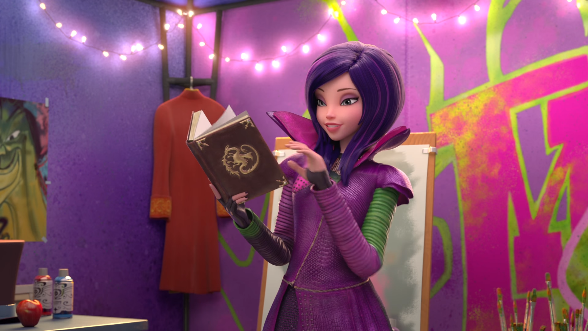 Начинается всё с того, что Мэл с друзьями исполняет свою фирменную песню, после чего читает список тех детей, которым позволят обучаться в Аурадоне. Но когда они выезжают, то Аид пытается сбежать, отчего Мэл превращается в дракона и даёт ему бой.