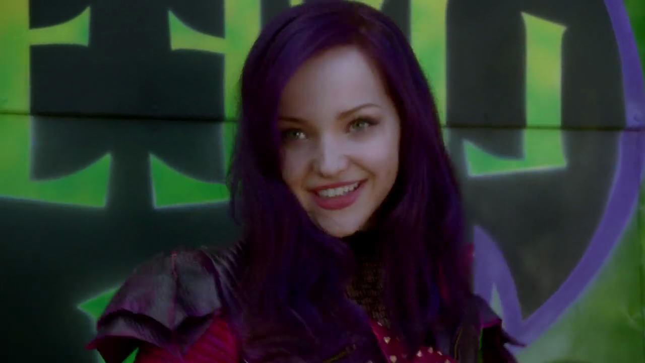 - Во втором фильме, когда Мэл изображает "Аурадонскую принцессу" Дав не носит парик.