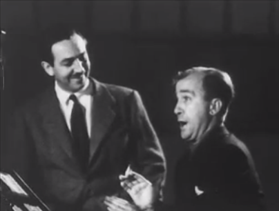 Блетчер с Уолтом Диснеем записывают диалоги для Мистер Маус отправляется в путешествие.