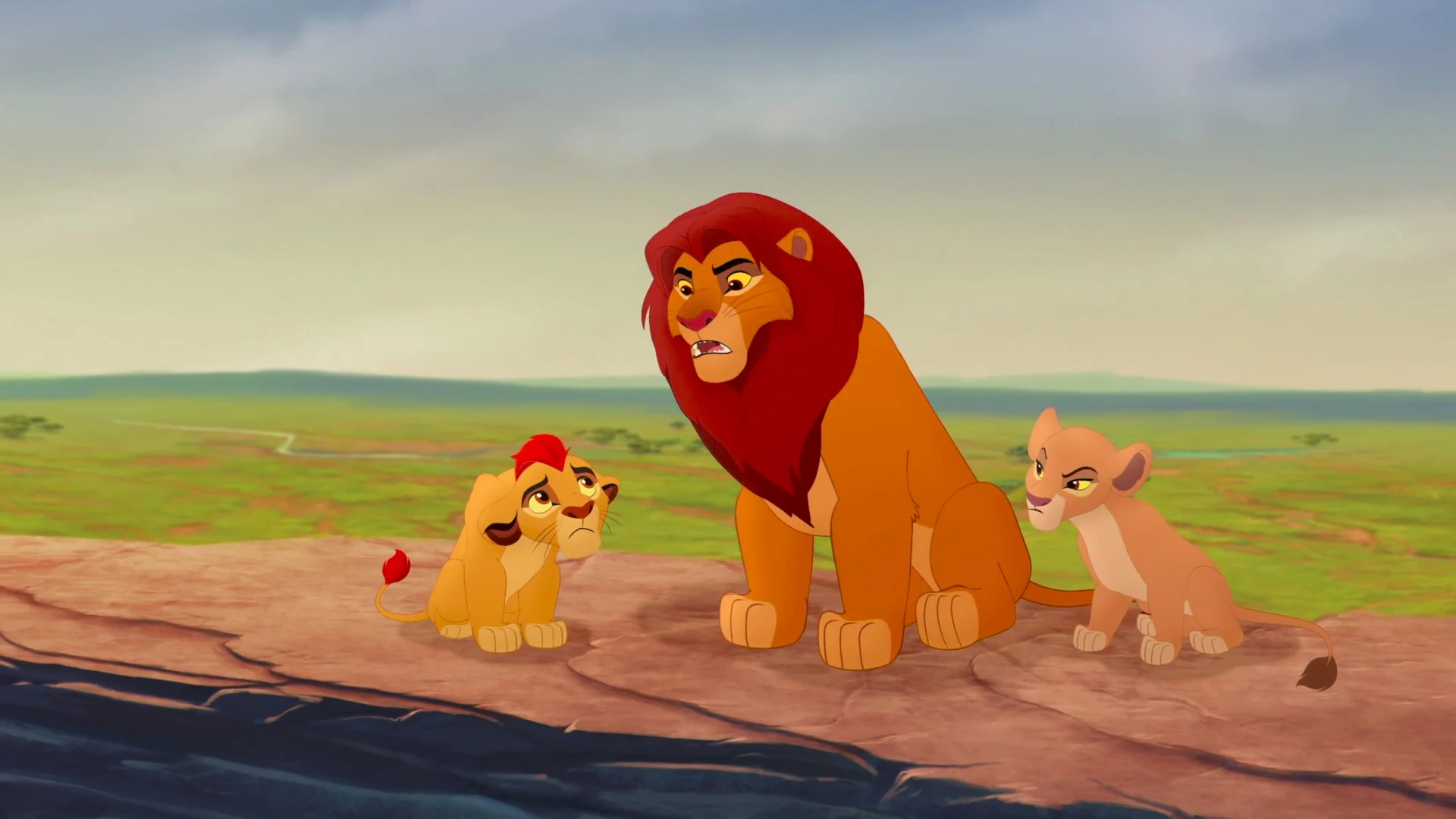 Над саванной занимается рассвет, осветив первыми лучами солнца Скалу Предков. Рано утром король Симба даёт утренний урок своей дочери Киаре, которая в будущем готовится стать королевой Земель Прайда (такая же сценка была в оригинальном фильме). Внезапно разговор о будущем принцессы прерывает Кайон — беззаботный младший брат Киары. Он и его друг Банга играют в баобаббол и этим самым мешают Киаре получать знания. Поэтому Симба попросил их играть в другом месте.