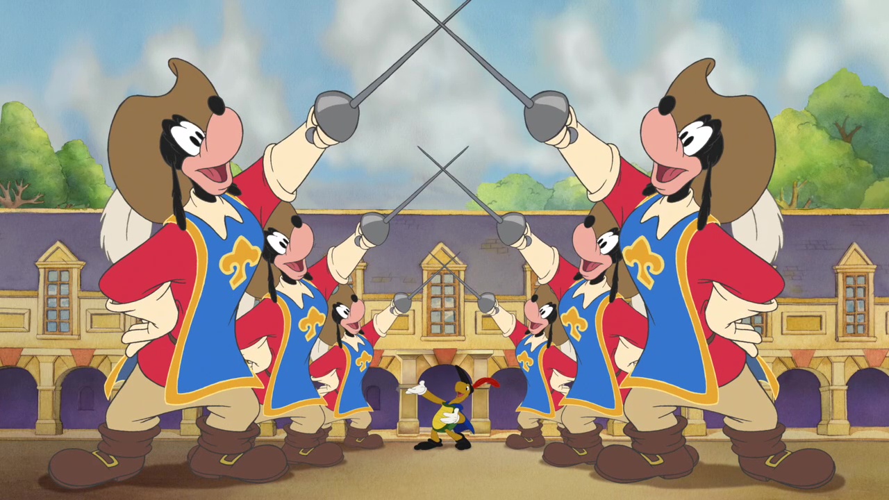 A final reprise of the song is heard during the end of the film after Mickey, Donald, and Goofy are dubbed as the Royal Musketeers after they save Minnie and Daisy from Pete where the Troubadour makes his very last on-screen appearance and announces for one more song in which Mickey, Donald, Goofy, and the musketeers sing together as part of the last song in the film.