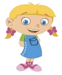 Her friends are Leo (her brother), Quincy, June, and Rocket. She also has other friends, but they are not human: a few of her friends include Little Caterpillar (who is now a butterfly), Little Red Train, Purple Plane, Blue and Red Hermit Crabs, Baby Chimp and Little Red Monster.