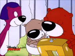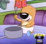 Butter Otter (also known as Baby Butter) is the youngest of the three Otter kids, being 2 years old, and always wears a diaper. Though she speaks a little bit, she is kind and friendly in every way. She can often be seen carrying a bottle. If there's one thing Butter loves to do, it's giggle. She never does really speak in full sentences, but her speech is fully advanced for her age. She likes to play with Scootch Raccoon, who is only a bit older than her. She's mostly happy and quickly joins a noodle dance and often spins around on her bottom during noodle dances. Butter is also pretty smart for someone her age, as she has found Mrs. Snootie's jewelry and convinced some fireflies to help her family find their way through the thick fog.