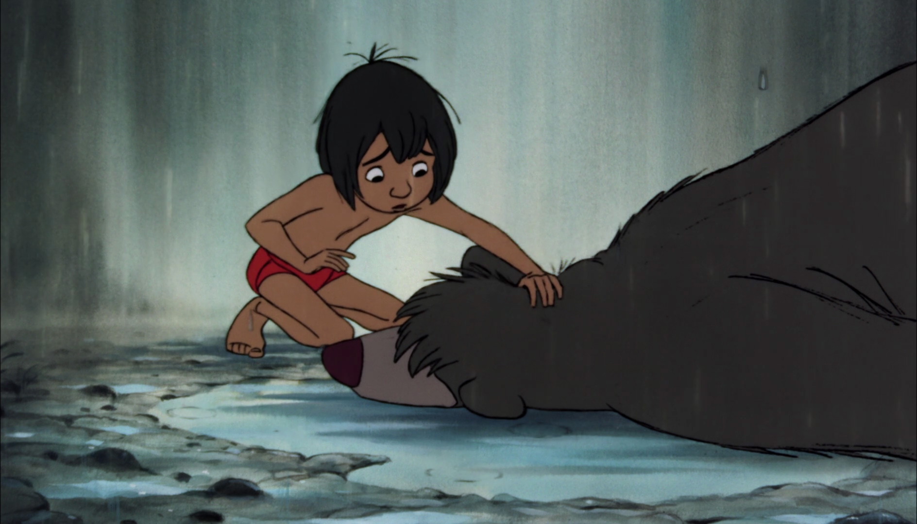 Mowgli tries to revive the seemingly dead Baloo.