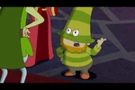 In "Free Teensy", he somehow shows cockiness after he pops out from behind her and makes a cute face while saying, "She can't get enough of me."