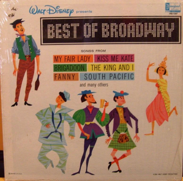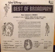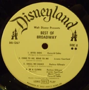 Best of Broadway is a 1957 Disneyland Records album featuring songs from hit Broadway musicals, such as My Fair Lady, Kiss Me Kate, Brigadoon, The King and I, Fanny, and South Pacific with music conducted by Camarata.