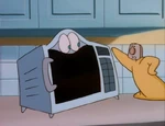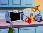 Blanky being stopped by Toaster for looking curiously at Kirby's "private time".