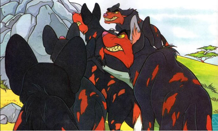 Concept artwork of the cape dogs who would eventually become Shenzi, Banzai, and Ed
