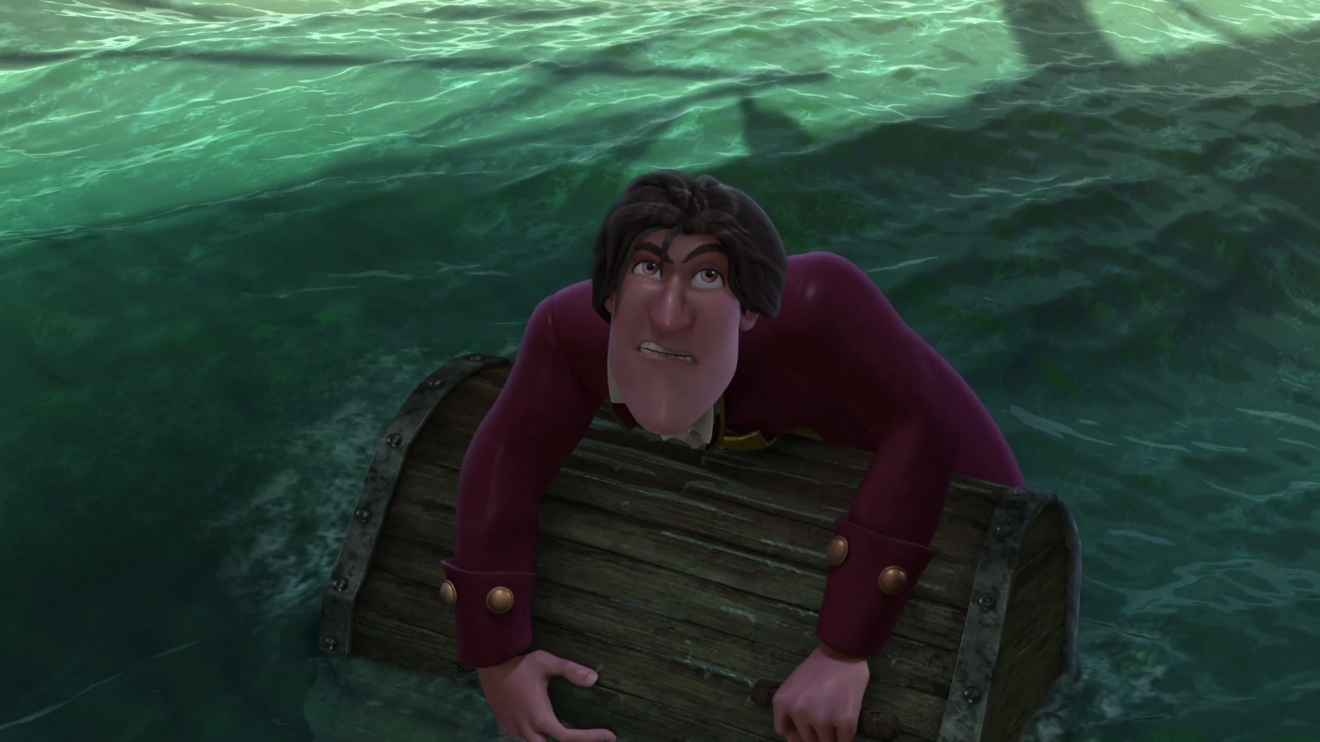 A washed up James grumpily demands Smee's assistance, foreshadowing the relationship the two will soon share.
