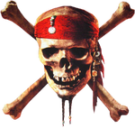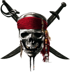 | Red bandana and two crossed swords; this logo would be used in Disney parks as well as the logo for the now-defunct game Pirates of the Caribbean Online as well as the Pirates of the Caribbean pinball machine. This design also appeared in certain occasions, such as appearing on the world icon of the Port Royal hub of Kingdom Hearts II, as the icon of the Pirates of the Caribbean world in Disney Universe, and on the side of the Starter Pack Play Set from the discontinued video game series Disney Infinity. It is also shown on the icon and stained glass for the Pirates of the Caribbean character collections in the video game Disney Magic Kingdoms. The skull depicted for the film series' logo was based on the skull mounted on the bricks before the boats drop to see the pirates in the original attraction. | |