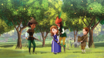 Sofia arrives back at the orchard where her family has finished making grape juice and sits sadly down on a log. After Sofia refuses an offer for the juice, Miranda instantly realizes that Sofia's upset and asks what's wrong. At first, Sofia tries to deny it, but Miranda takes out her tiara, which Baileywick found in her basket, and asks why she took it off. Sofia tells her mother what Carol said and what she did because of that. Miranda tells her daughter she should always be proud of who she is no matter what anyone else thinks and she should never want to be with people that she can't be herself around, especially since she's such a sweet and helpful person. Just then, Carol shows up and asks if she can speak to Sofia. Miranda greets Carol with unconcealed coldness for hurting her daughter's feelings, which she apologizes for and asks Sofia to come back and retry the test, when they hear Jane screaming for help. The pair come back just in time to find Jane in trouble and rescue her. Afterwards, Jane apologizes to Sofia for her acts of sabotage and admits her jealousy. Sofia has passed the test and is now in the band.