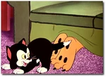 Pluto comes home after a long night and has to fight Figaro for the right to take a nap.