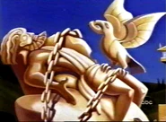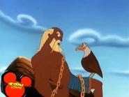 For Prometheus' disobedience, he was chained to a rock where everyday the Caucasian Eagle was ordered to eat his liver. The Eagle is first seen appearing to taunt the God, then proceeding to eat his liver. After Prometheus noticed something in his talon, he discovered that the bird had brought along an onion because he was tired of eating the same thing every day. Soon after, Hercules arrives to free the God after hearing of his imprisonment. He and the Eagle process to fight each other, Hercules coming out victorious after causing the Eagle to run into a rock.