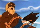After Zeus, Hercules, Prometheus, and the other Gods have a conversation, Zeus decides that Prometheus' fate will be decided by a "trial-by-fire". Hades then proceeds to fire a bolt of energy at the Eagle, turning him into fire-powered phoenix that proceeds to fight Prometheus (and have his liver fried). After Hercules joins in to help Prometheus, he defeats the Eagle, causing him to turn back into his original form. The Eagle is later seen weeping along with Hades, who is waiting for his minions, but he doesn't want to the eagle in.