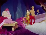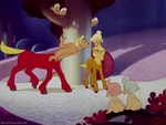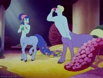 The supremely beautiful and gorgeous centaurettes are first seen by the river and a waterfall. Some of them were swimming in the river and splashing each other for fun. The ones on dry land were assisted by the small cherubs with their hair and makeup. The cherubs see the centaurs and help the centaurettes look their best to attract the attention of the centaurs. Each centaurette was able to find a centaur to mate with, and are shown doing various fun activities with their new beaus.