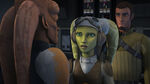 Slavin contacts the rest of the group and tells them that he will return Hera and Ezra in exchange for Cham, and if Cham does not arrive by sundown, Slavin will have Ezra and Hera executed. Despite everyone knowing Slavin has no intention to honor the deal, they agree to let Cham turn himself in to give the others the opportunity to break Ezra and Hera out. Hera ultimately decides to blow up the house, saving Cham from capture. They then all escape offworld but are unable to recover the family kalikori, which Thrawn steals.