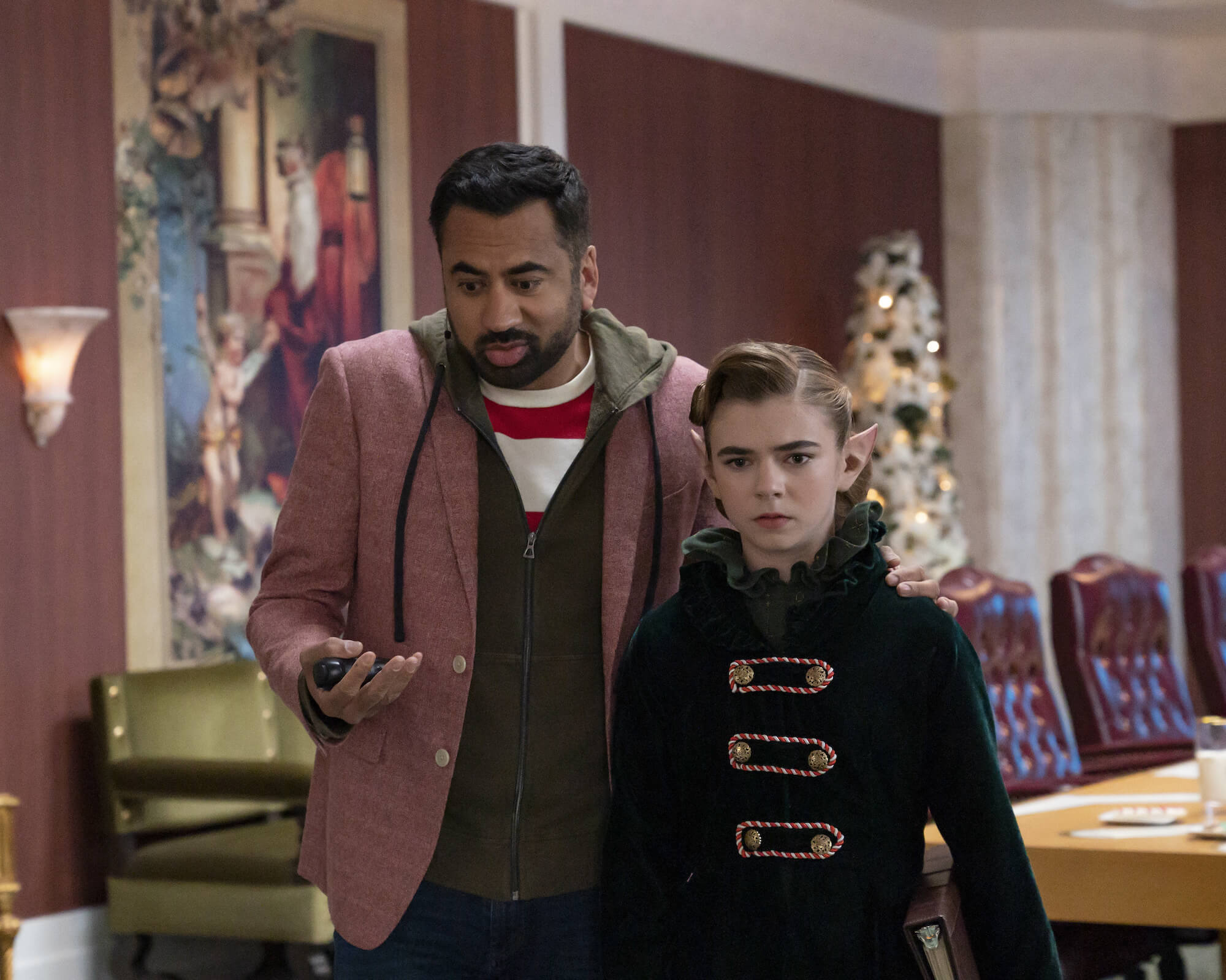 - Scott Calvin notices a boy holding a Grogu doll and mentions Buzz Lightyear, the latter being a running gag that Tim Allen mentions in most of film and television appearances, along with referencing Santa Claus.