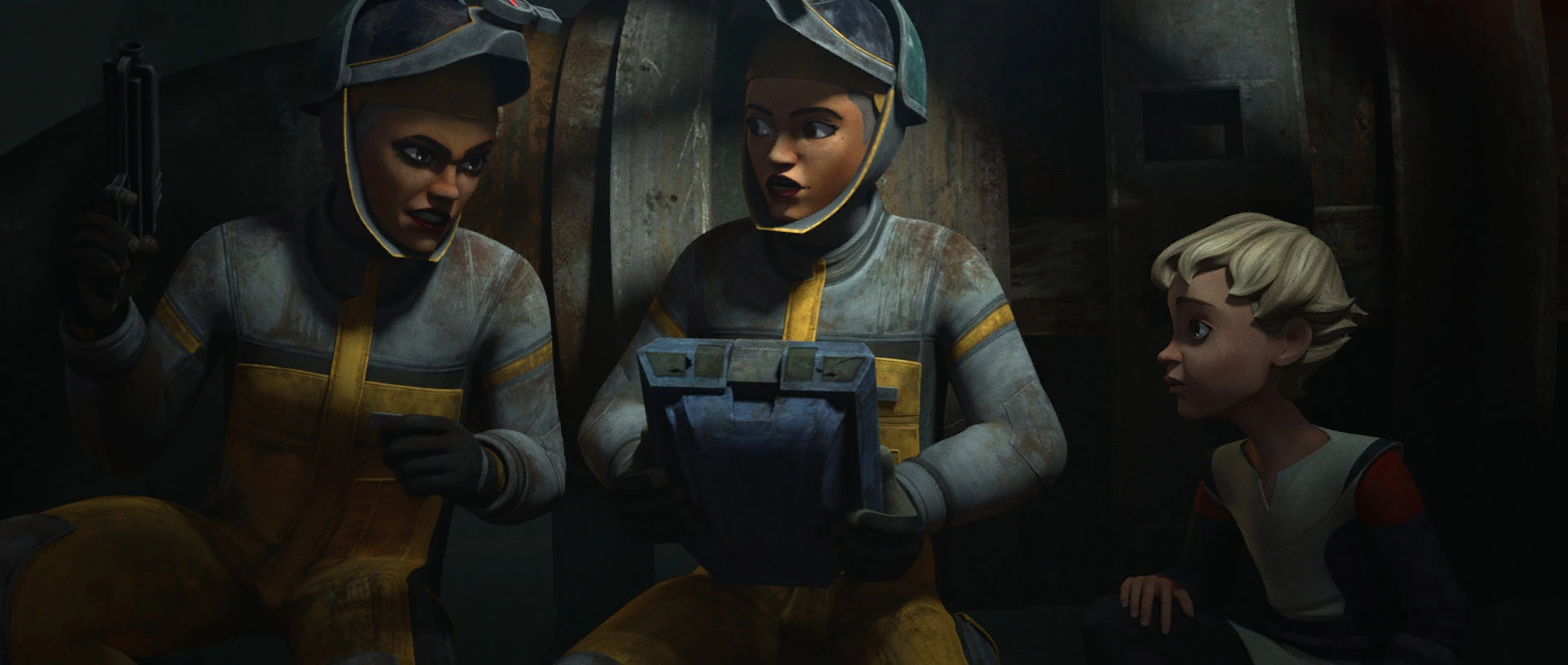 Cid hires the Bad Batch to retrieve a Separatist tactical droid for its battle intel before it is destroyed at a Corellian decommissioning site. They encounter Imperial police droids guarding the facility, as well as Trace and Rafa Martez who are also after the droid. Wrecker accidentally hits his head and his inhibitor chip begins to activate. Tech and the sisters program the tactical droid to turn on the police droids, allowing them to escape, but the tactical droid is destroyed in the process. The sisters explain that they were retrieving it for a client who is fighting the Empire. Hunter gives them a data rod that has a copy of the droid's data that Tech made during the fight, and the sisters later tell their client how to find the Bad Batch.