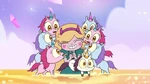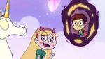 Star returns to normal and finds herself in the realm of magic, which has since recovered after Toffee's defeat, and is greeted by the baby millhorses that inhabit the world. She is greeted by a much older millhorse who reveals that she was the one that Star created during the events of "The Battle for Mewni" to revive her wand. Star wishes to return home, but the millhorse insists that she stay and, in an almost dreamlike trance, she agrees. Back in Star's room, Marco panics as he realizes that he cannot use the dimensional scissors to reach Star. As a last resort, Marco picks up Star's wand and, to his and Janna's surprise, conforms to him. Marco decides to use the all seeing eye spell where he spontaneously receives glowing crescent marks on his cheeks.