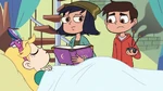 Star has Marco and Janna with her to recap what has been happening with her lately and they agree that she must go to sleep and figure out where she is trying to go when she is in her butterfly form. Janna decides to hypnotize her, which she gives an example of by putting Marco to sleep after snapping her fingers and saying "chickenbutt", and they attach her shell phone to her head so that they can see where she is going. After going to sleep, Star wastes not time in transforming and flying away. Marco and Janna witness Star flying through different portals to various dimensions before coming across a giant glowing one in the middle of space. Despite Marco not wanting her to, Star goes through it and drops the phone, cutting off the signal.