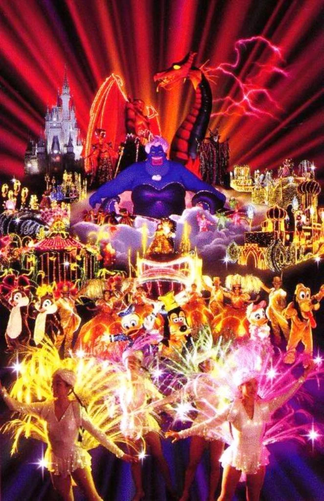 The storyline of the parade is loosely based on the elements of Fantasmic!. The 31 floats were split into three acts. The parade starts with Tinker Bell, Mickey Mouse, and the three fairies from Disney's Sleeping Beauty "wishing upon a star to bring the gift of Disney light" before being disrupted by Disney Villains who "take the light and make it night", then ending with the Disney Heroes and Heroines who "turn the dark back into light".