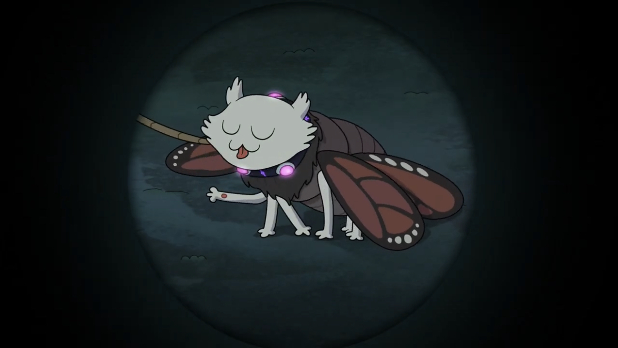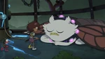 Domino II starts off as a small, adorable creature that was found by Anne and Sprig, trapped in mud while being surrounding by giant wasps. She is later revealed to be a Coastal Kill-a-pillar, which according to Hop Pop, is one of the most dangerous amphibivores, and they get white spots when it is time for them to turn into monstrous butterflies.