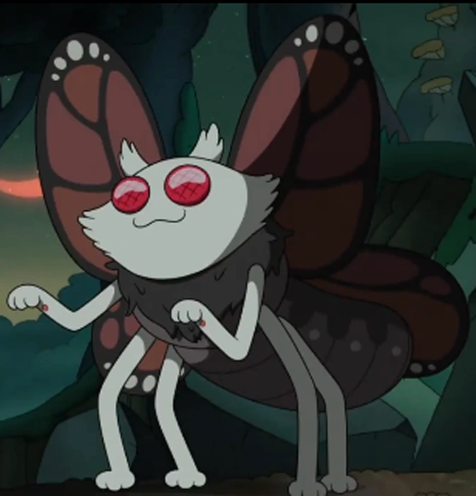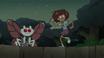 In “The Hardest Thing” Domino II is often seen in the background in the beginning of the episode and is seen in the big imagined group shot when Anne is about to Activate the secret spell. At the end of the episode she is seen looking at Anne, Sasha, and Marcy when they take their final bow to Amphibia before going though the finale portal. In the epilogue Domino II is seen flying the valley of Amphibia with a Orange Kill-a-moth.