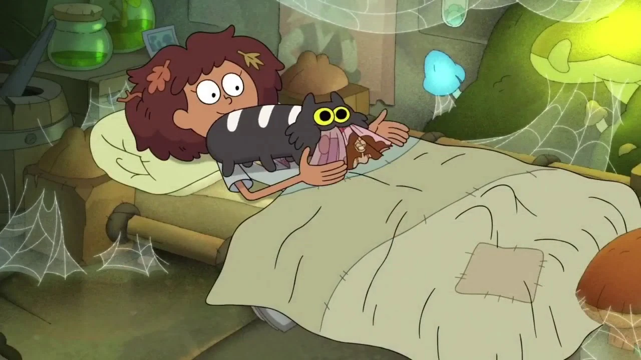 Despite Anne's efforts in keeping Domino II at bay, she begins attacking the Plantars and tries to eat them, forcing Anne to lead her outside with a mouse toy. After reaching a cliff, Anne solemnly tosses the mouse toy into the wild as Domino II rushes after it as Anne sadly watches her disappear into a forest. As Anne cleans up Domino II's cobwebs the next day, she is given a stuffed doll version of Domino II, made of out the caterpillar's hair which Anne lovingly hugs.