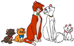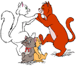 Duchess, the kittens, and Madame Adelaide Bonfamille listening to records.