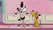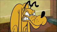 Meanwhile, Pluto starts getting jealous that Goofy gets all the attention from Mickey, and his devil and angel start talking to him. Later on, Pluto angrily chews up Mickey's slipper to frame Goofy, making Mickey angry he throws Pluto out of the house for the night to make him think about what he did. Eventually, it starts raining and Pluto then realizes Goofy was making him jealous. Then he devises a plan to get payback, where he rolls around in the mud, so that he and Goofy are taken to the dog spa.
