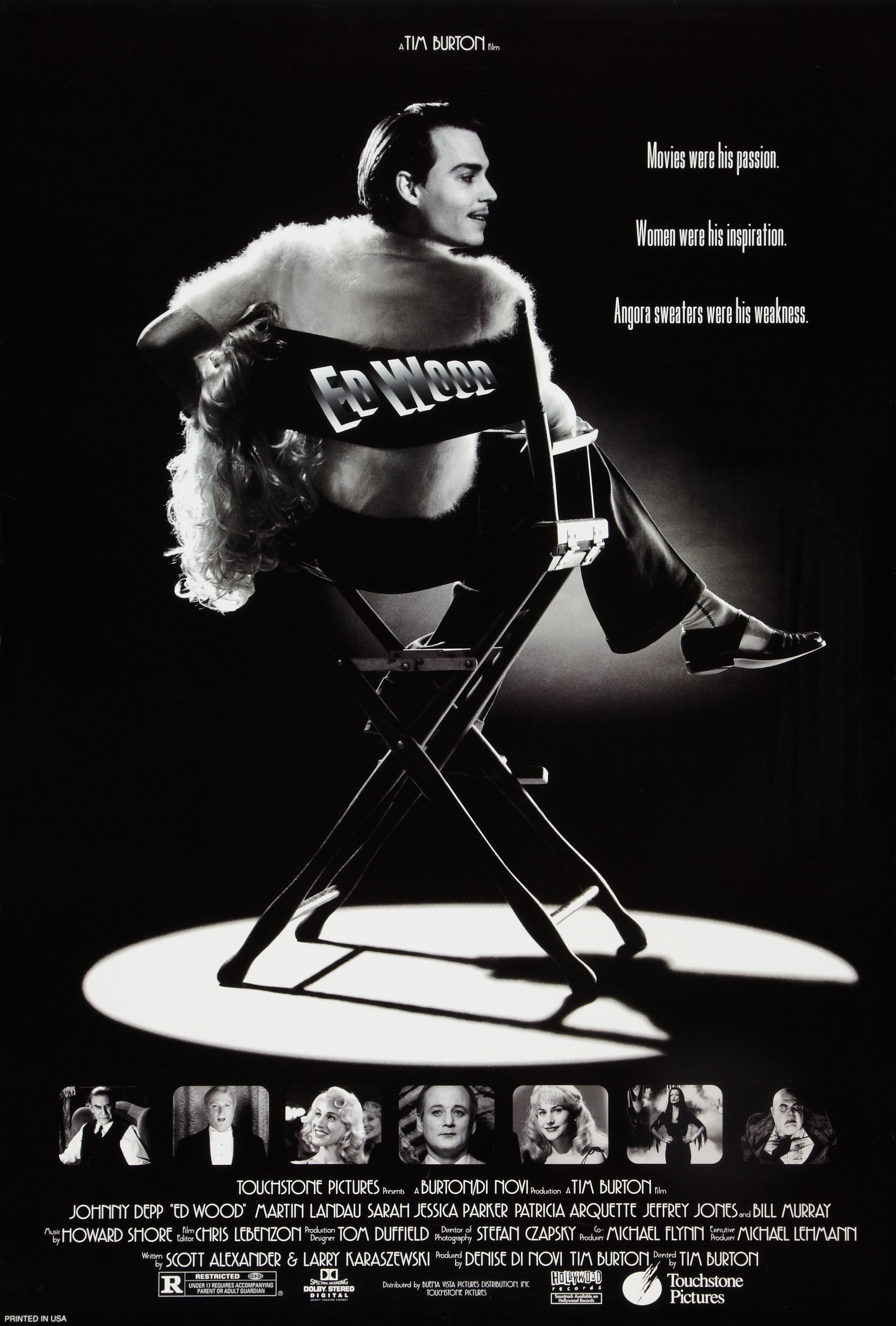 Ed Wood is a 1994 American comedy-drama biopic directed and produced by Tim Burton, and starring Johnny Depp as cult filmmaker Ed Wood. The film concerns the period in Wood's life when he made his best-known films, as well as his relationship with actor Bela Lugosi, played by Martin Landau. Sarah Jessica Parker, Patricia Arquette, Jeffrey Jones, Lisa Marie, and Bill Murray are among the supporting cast.