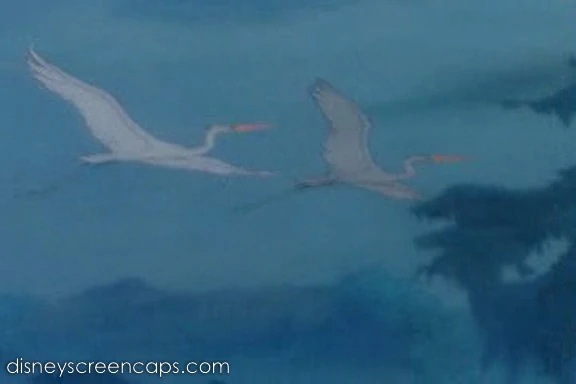 Originally the Egret Couple was going to appear in Clair de Lune a segment that was going to be included for Fantasia, but was cut from the final film due to the film's length. A workprint of the original was discovered and Clair de Lune was restored in 1992, complete with the original soundtrack of Stokowski with the Philadelphia Orchestra. It was included as a bonus feature in the Fantasia Anthology DVD in 2000.