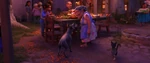 Abuelita first appears during the opening narration, remarking on how thin her grandson is and insistently plying him with more tamales. Miguel remarks that she runs the household exactly like her late grandmother Imelda, particularly the music ban to extreme degrees as she confiscates a bottle he was playfully blowing on to play music with it, shuts a window as a Pizza Planet truck goes past playing music, and suddenly bursting out of the courtyard to scream "No music!" at a trio of drunken singing men who happened to be passing by, terrifying them all into fleeing away.